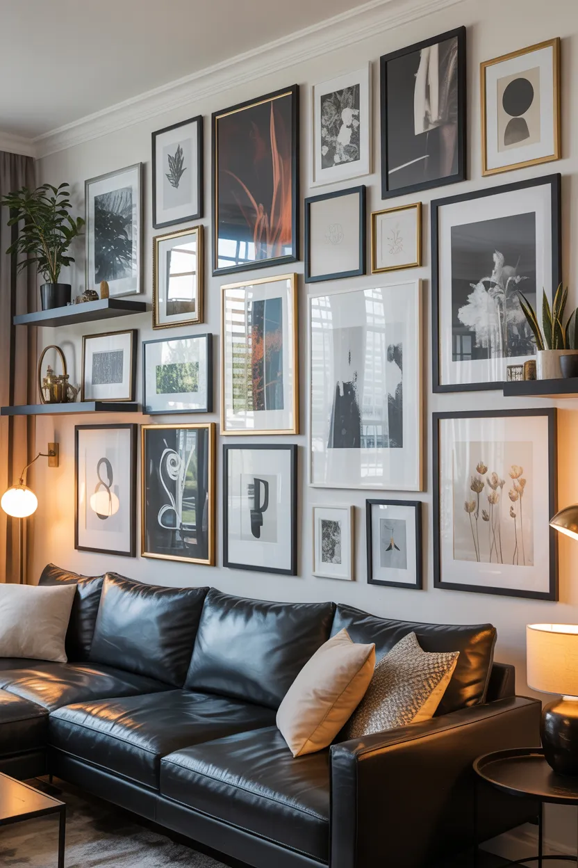 A gallery wall allows you to showcase multiple artworks while creating a visually engaging display. Mixing different frame sizes, art styles, and photos can make the wall feel personal and artistic. This style works wonderfully in both modern and vintage living rooms.