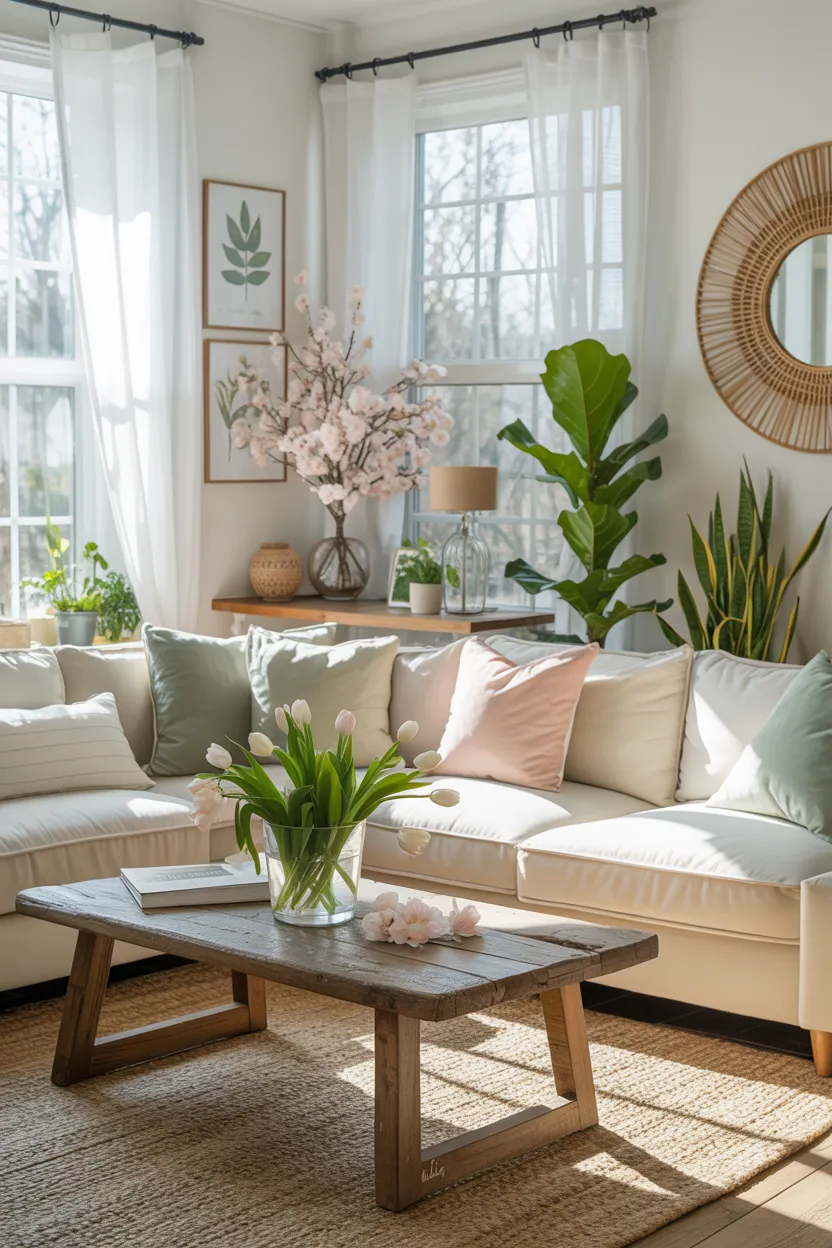 Nothing says spring like fresh flowers. Tulips, daisies, or peonies placed on a coffee table instantly energize your living room.